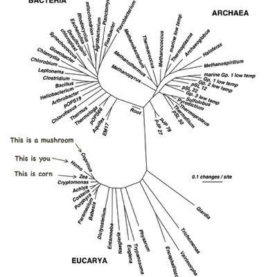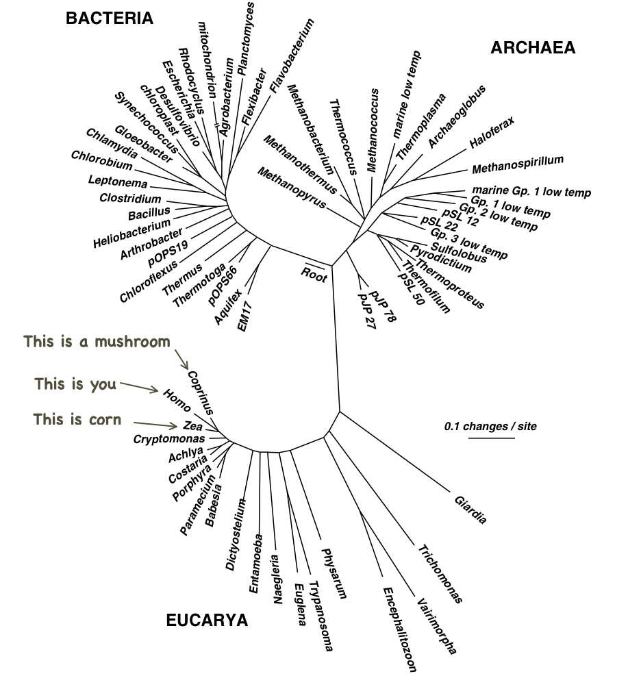 If you are wondering where you are on that chart, you…as well as all fungus and every animal that ever existed is on that little green spur at the bottom right labeled "Opisthokonta."